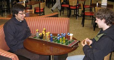 Players try to score touchdowns at a lively pace by advancing their team’s “Men” across the playing board to their opponent’s end zone. They also attempt to stop their opponent from scoring by using intuitive guesses. The player that scores 3 touchdowns first and stops their opponent during a “redemption” turn, wins.
